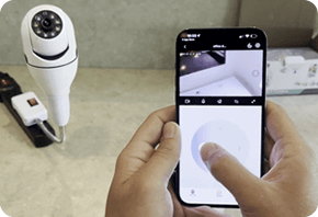 You’re all set! Once your Light Socket Security Camera™ is securely connected to your wifi, you’ll be able to take full control of the 1080p camera right from your iPhone or Android — able to move it 360° horizontally and 120° vertically.